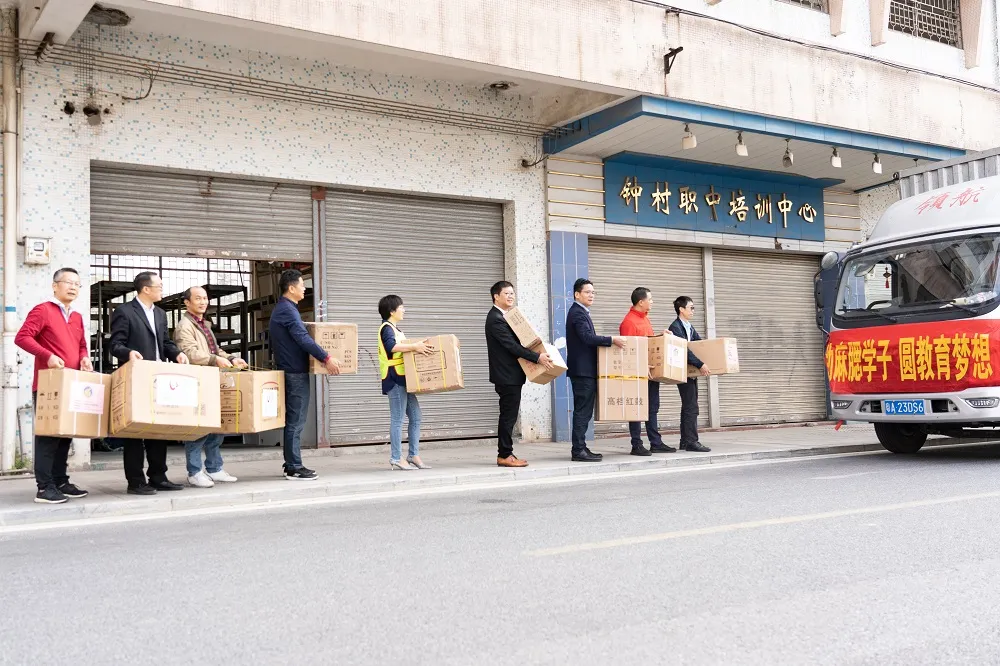 本次公益助學(xué)活動(dòng),由番禺工貿(mào)職教集團(tuán)發(fā)起,諾登公益主辦,廣東省青企聯(lián)、德興小學(xué)、家寶紅木家具、長(zhǎng)鷹電子、深學(xué)(廣州)教育、廣州和富汽車(chē)等單位協(xié)辦,同時(shí)得到了番禺區(qū)教育局、番禺區(qū)職業(yè)技術(shù)學(xué)校和民辦教育協(xié)會(huì)的大力支持。在活動(dòng)推進(jìn)的過(guò)程中,各捐贈(zèng)企業(yè)急受助方麻腮小學(xué)之所急,針對(duì)該校教學(xué)物資緊缺的現(xiàn)狀,群策群力、分工協(xié)作,將公益活動(dòng)募集的20萬(wàn)元資金購(gòu)置了用于圖書(shū)室、音樂(lè)室、美術(shù)室、體育室和科技室等場(chǎng)室急需的設(shè)備器材。11月28日上午,各捐助單位的領(lǐng)導(dǎo)和代表齊聚番禺職校北校區(qū),全員參與,親手將一箱箱捐贈(zèng)物資搬運(yùn)到即將開(kāi)往貴州赫章縣的貨車(chē)上,將一份份濃濃的關(guān)愛(ài)之情傳遞給遠(yuǎn)方山區(qū)貧困的孩子們。