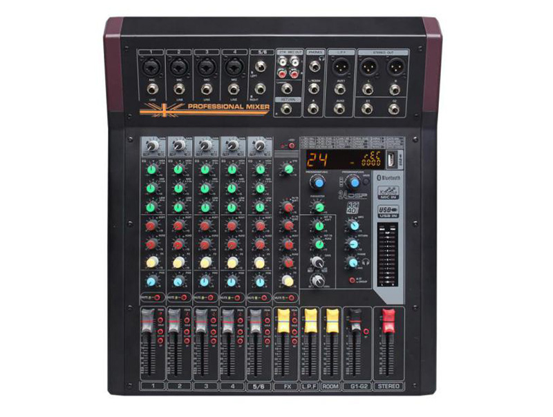 產(chǎn)品特點(diǎn) 6路獨(dú)立切換MIC XLR輸入/LINE單聲道輸入通道,1組立體聲; 每通道3段EQ均衡器; 60MM高精度推子; 每個(gè)通道2個(gè)AUX發(fā)送:用于監(jiān)視應(yīng)用程序效...